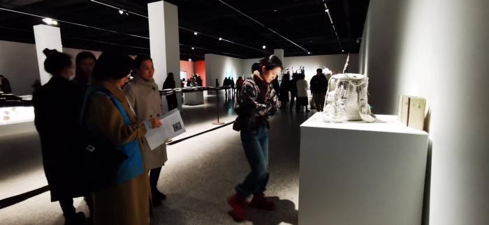 展览现场,冯崇利的《穿行-3》以钢为材勾勒出竹叶般的轨迹,在静止中蕴含动势;陈辉的《叠山》将废弃纸箱转化为纸浆,塑造成山水意象;王雷则用旧报纸搓线编织成《行海NO.2》等作品,以极致手工回应机械复制的时代。