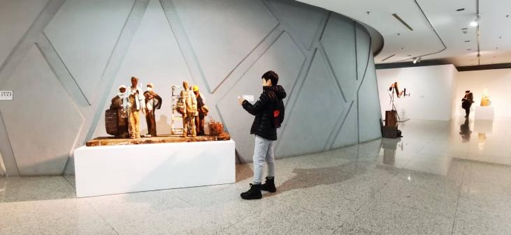 展览分布于湖北美术馆6个展厅,涵盖具象雕塑、抽象与装置、动态雕塑以及从中国传统文化中转化而来的多种创作类型。展厅内,既可以看到钢铁、不锈钢、铜等传统工业材料,也出现了纸浆、废旧报纸、木材、电机装置等“非常规”媒介,体现出当代雕塑材料语言的开放性与实验性。